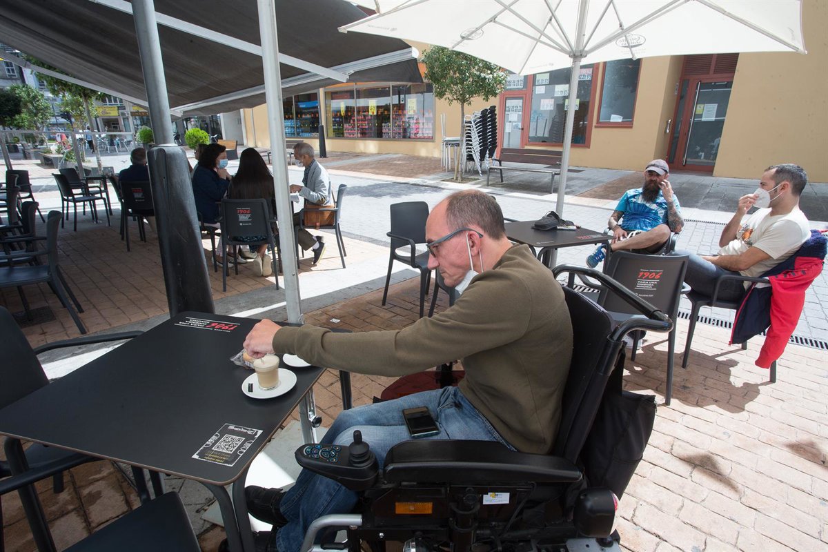 Un hombre toma café en el barrio de A Milagrosa de Lugo el pasado 29 de agosto. - Carlos Castro - Europa Press