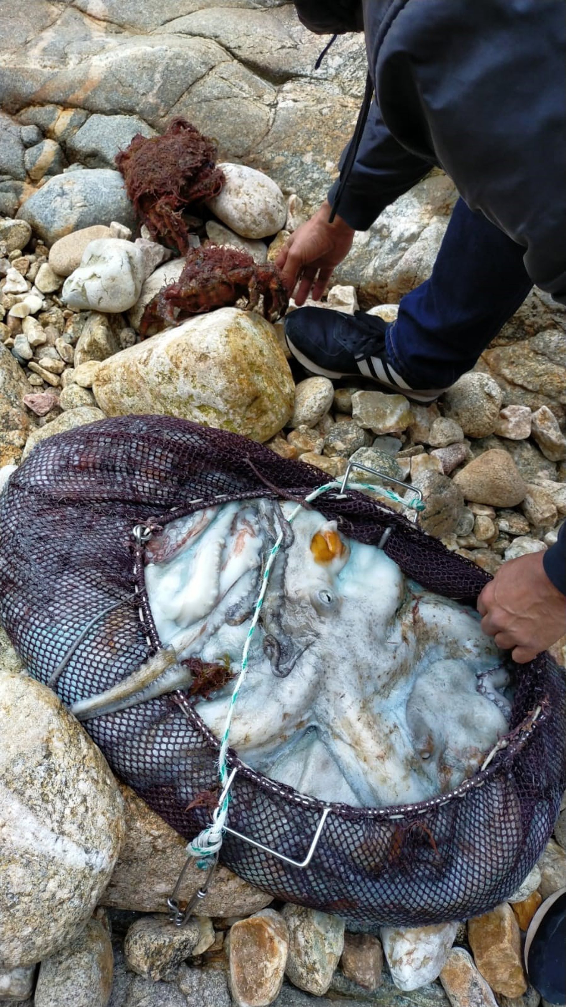 Pulpos y centollas intervenidos a un 'furtivo' identificado y denunciado por la Policía Local, por faenar ilegalmente en la zona de Saiáns (Vigo). - POLICÍA LOCAL DE VIGO