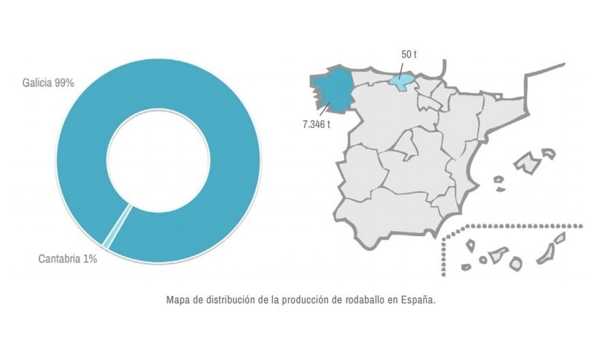 Galicia continúa como la mayor productora de rodaballo de acuicultura en España, con el 99% del mercado existente, al criar 7.346 toneladas en 2016 de las 7.396 de todo el país, que se completan con otras 50 toneladas que se producen en Cantabria (1%).