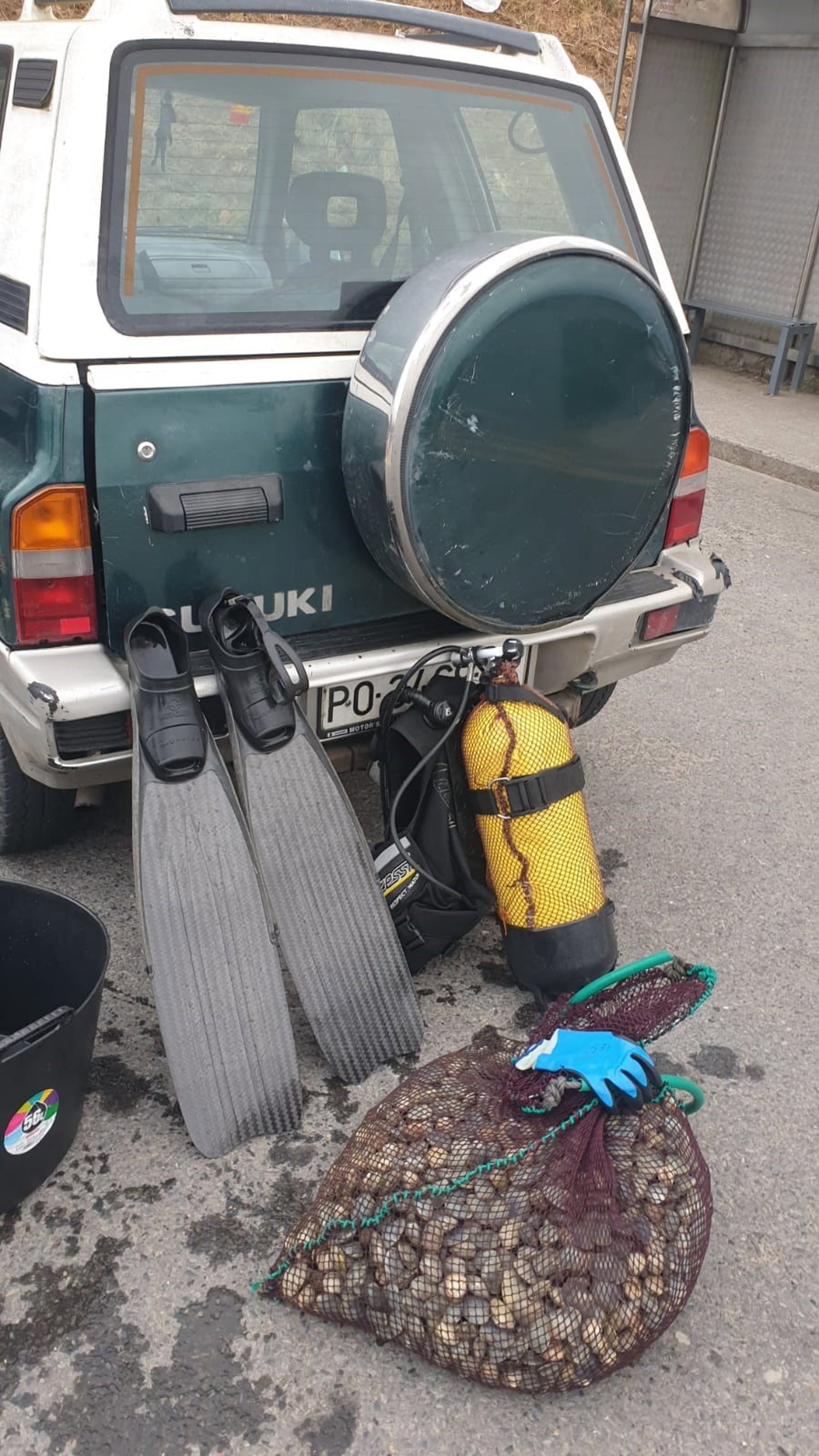 Una vez introduce en el maletero del vehículo todas las pertenencias, inicia la marcha rápidamente, siendo interceptado a la salida del puerto donde se comprueba que las capturas corresponden a almeja y berberecho. El bivalvo fue incautado y, al hallarse con vida, devuelto al mar en la misma zona en que fuera extraído. También se incautó el equipo de buceo.