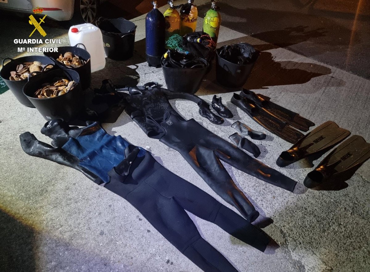 Los agentes procedieron a su identificación y a decomisar los enseres, al sorprender a los furtivos mariscando con "medios prohibidos", en horario "no hábil" y sin autorización, según ha señalado el comunicado de la unidad de la Benemérita.