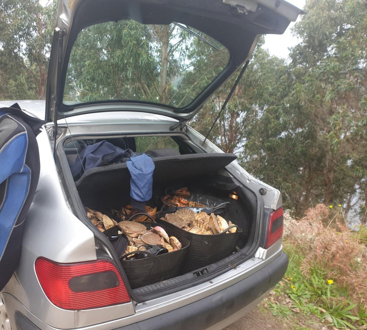 El Servicio Marítimo Provincial de la Guardia Civil de A Coruña ha intervenido 414 unidades de vieira --93,65 kilos--, una centolla, un equipo de buceo de respiración autónoma y el vehículo utilizado para su transporte en la Playa del Bonete del Cura en el municipio de Mugardos por pesca ilegal.
