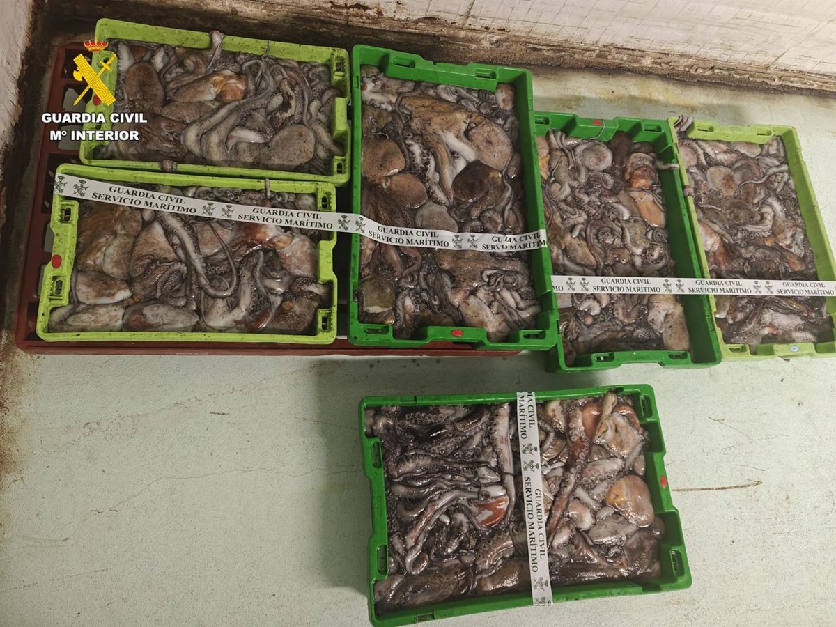 El Servicio Marítimo Provincial de la Guardia Civil de A Coruña ha llevado a cabo la incautación de 151,80 kilogramos de pulpo que estaba siendo transportado sin la documentación reglamentaria que garantice su trazabilidad y origen legal.
