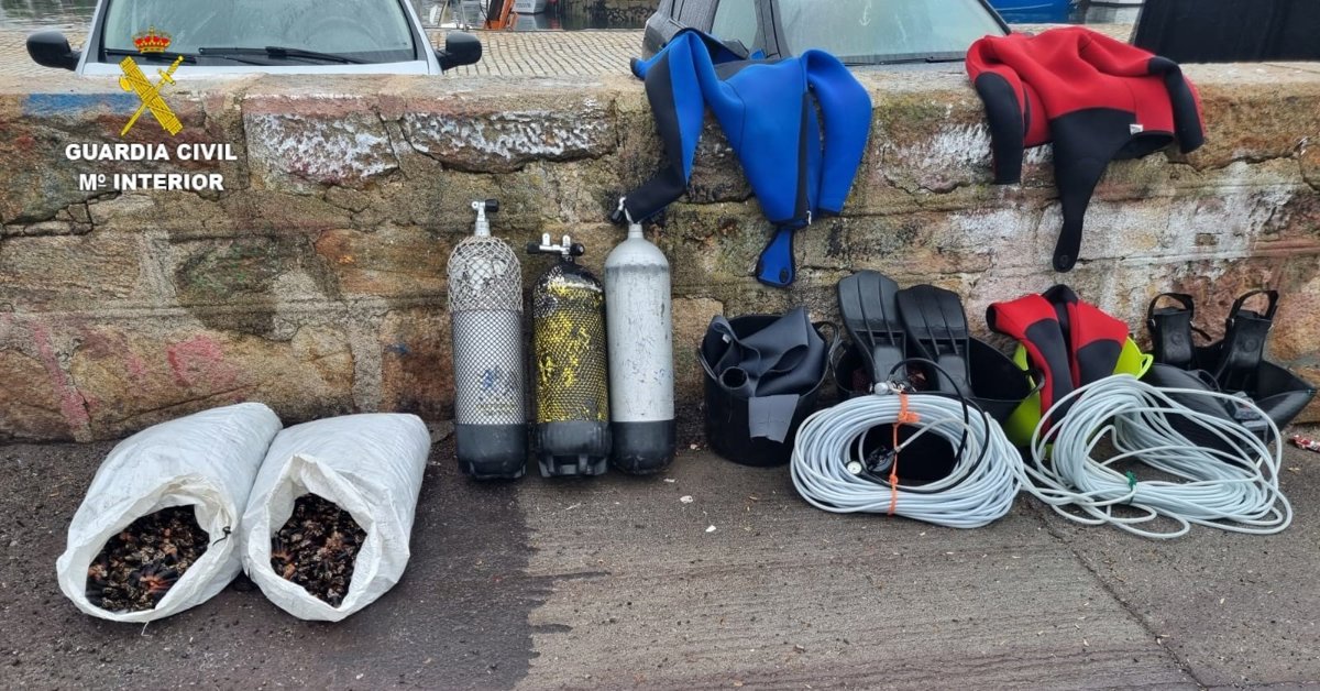 Por otra parte, la Guardia Civil también informa de otra operación, en este caso en Camariñas (A Coruña), en donde se incautaron 67 kilos de percebe, tres equipos completos de buceo y una embarcación de recreo.