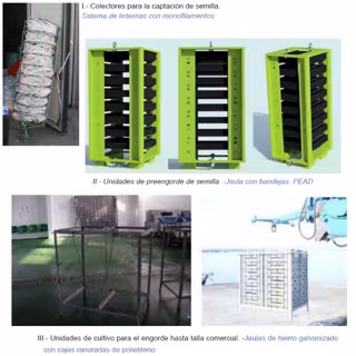 De tal forma, estas bateas especiales cuentan unas argollas con un sistema de jaulas metálicas. Por un lado, habrá una batea con jaulas con bandejas de cultivo ensambladas para el prengorde de semilla con capacidad de ocho o 12 unidades.