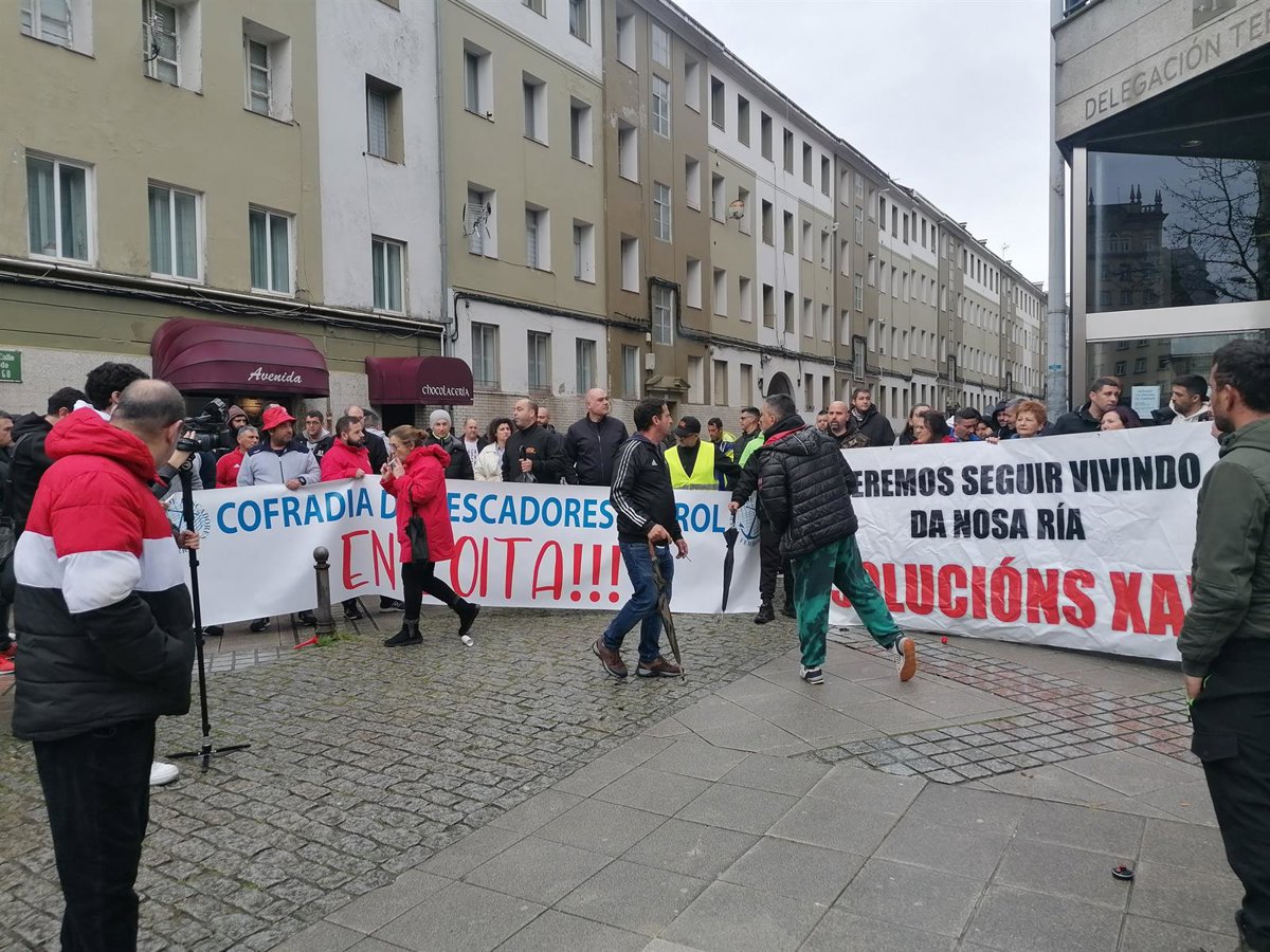 Más de un centenar de mariscadores de las cofradías de Ferrol, Santiago Apóstol de Barrallobre, en Fene, y de Mugardos (A Coruña), se han concentrado en el mediodía de este jueves ante el edificio de la Xunta en Ferrol para demandar a las administraciones "soluciones ante la baja productividad marisquera" de la ría de Ferrol, sobre todo de almejas.