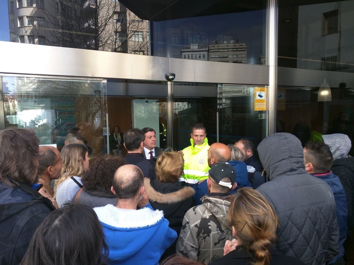 Allí, se ha vivido algún momento de tensión entre los guardias jurados, agentes de la Policía Nacional e integrantes del colectivo de trabajadores del mar, que han llegado a esta lugar tras recorrer buena parte del barrio de A Magdalena en manifestación, mientras hacían sonar sus silbatos.