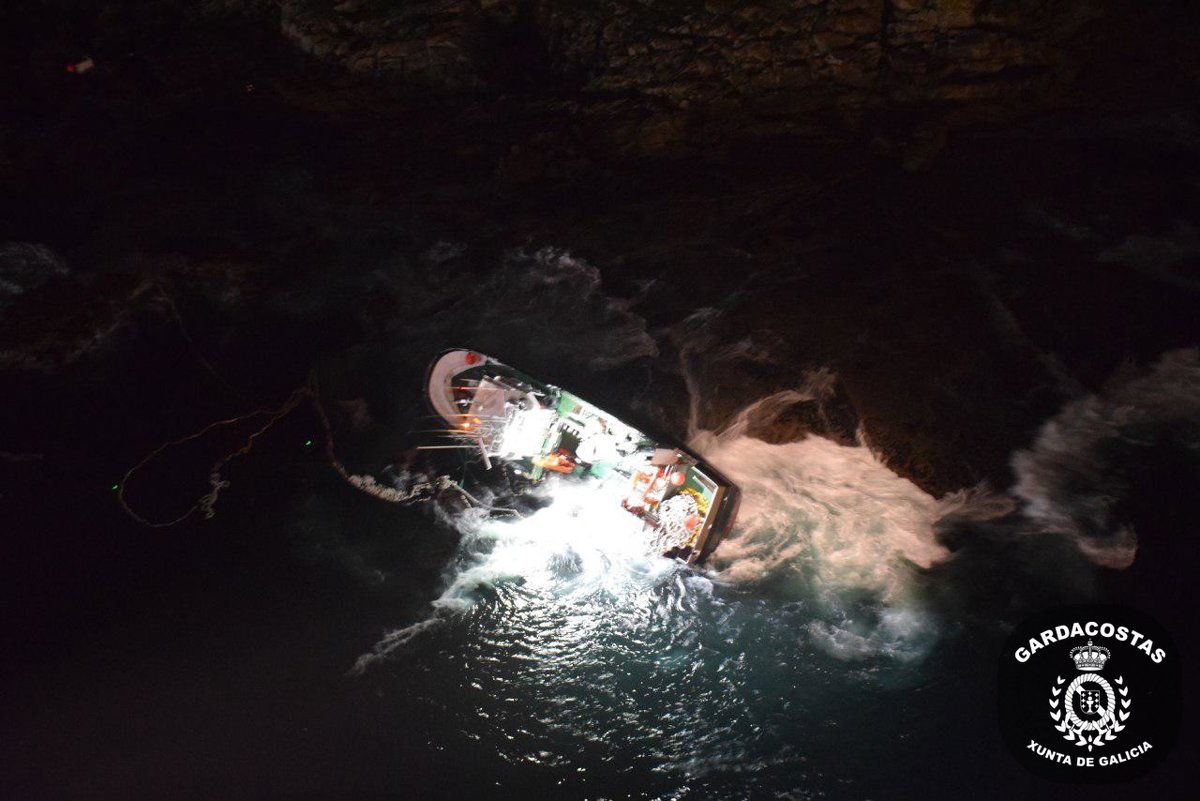 Según han informado fuentes de Salvamento Marítimo a Europa Press, a las 4,20 horas de este martes otro pesquero avisó de que el cerquero 'Divina del Mar', con base en Portosín (A Coruña), había varado y había lanzado varias bengalas de emergencia.