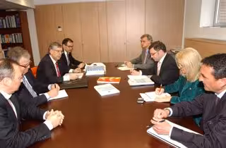 El secretario general de Pesca del Ministerio de Agricultura, Alimentación y Medio Ambiente, Carlos Domínguez, ha recibido este martes a representantes de la Asociación Nacional de Fabricantes de Conservas de Pescados y Mariscos (Anfaco-Cecopesca), encabezados por su secretario general, Juan Vieites.