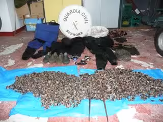 La Benemérita ha destacado la presencia de ocho kilogramos de ejemplares inmaduros entre las citadas capturas intervenidas a los dos furtivos.