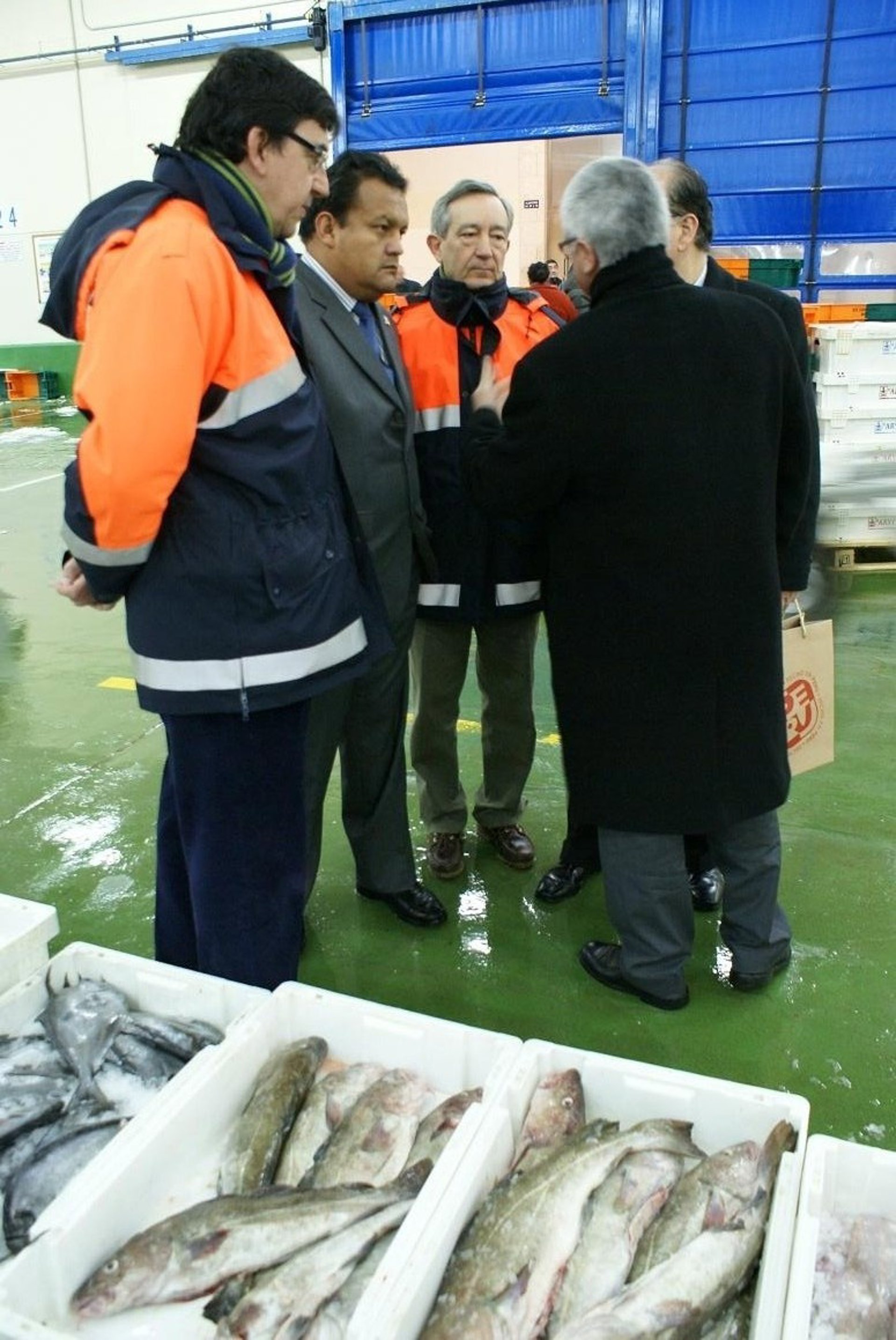 El representante del Gobierno peruano inició su visita en la lonja y el Puerto de Vigo, como ejemplo para el desarrollo pesquero de su país. Allí mantuvo un encuentro con el presidente de la Autoridad Portuaria, Ignacio López-Chaves.