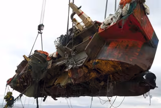 Desde entonces y hasta el lunes, el pecio se encontraba en el lugar del accidente, contra las rocas. Fue este lunes día 19 cuando por fin se llevaron a cabo con éxito las labores para trasladar el barco a Gijón, elevándolo con un sistema de flotadores y remolcándolo después.