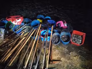 Como consecuencia de este operativo, los cuerpos de seguridad se han incautado de 350 kilos de almeja en Mugardos y de 50 en Boiro, así como de diversos útiles empleados para recoger el marisco: cubos, linternas y azadas, entre otros.