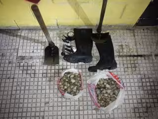 Los testigos señalaron que había otros dos furtivos escondidos detrás de unos coches. Estas personas trataron de darse a la fuga al ver a los agentes, y arrojaron dos bolsas llenas de marisco y dos azadas.