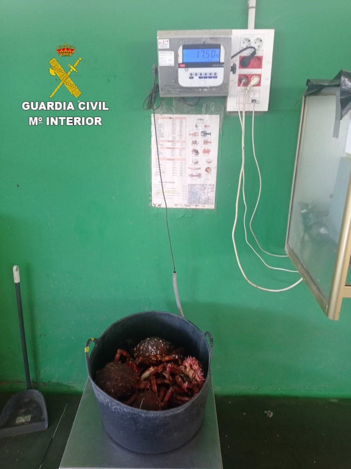 La Guardia Civil aprehendió 17,5 kilos de centolla ovada carente de documentación que amparase su trazabilidad en Rianxo, según informa la Benemérita.