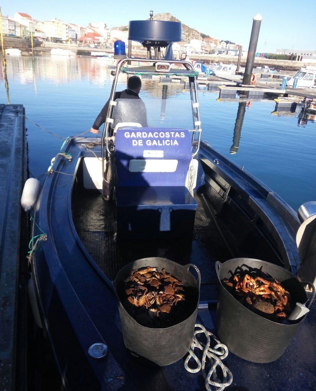 La actuación más destacada se produjo en la ría de Camariñas y se saldó con el comiso de 96 kilos de centolla, la mayoría de tamaño antirreglamentario; un kilo de nécora y las cinco nasas.