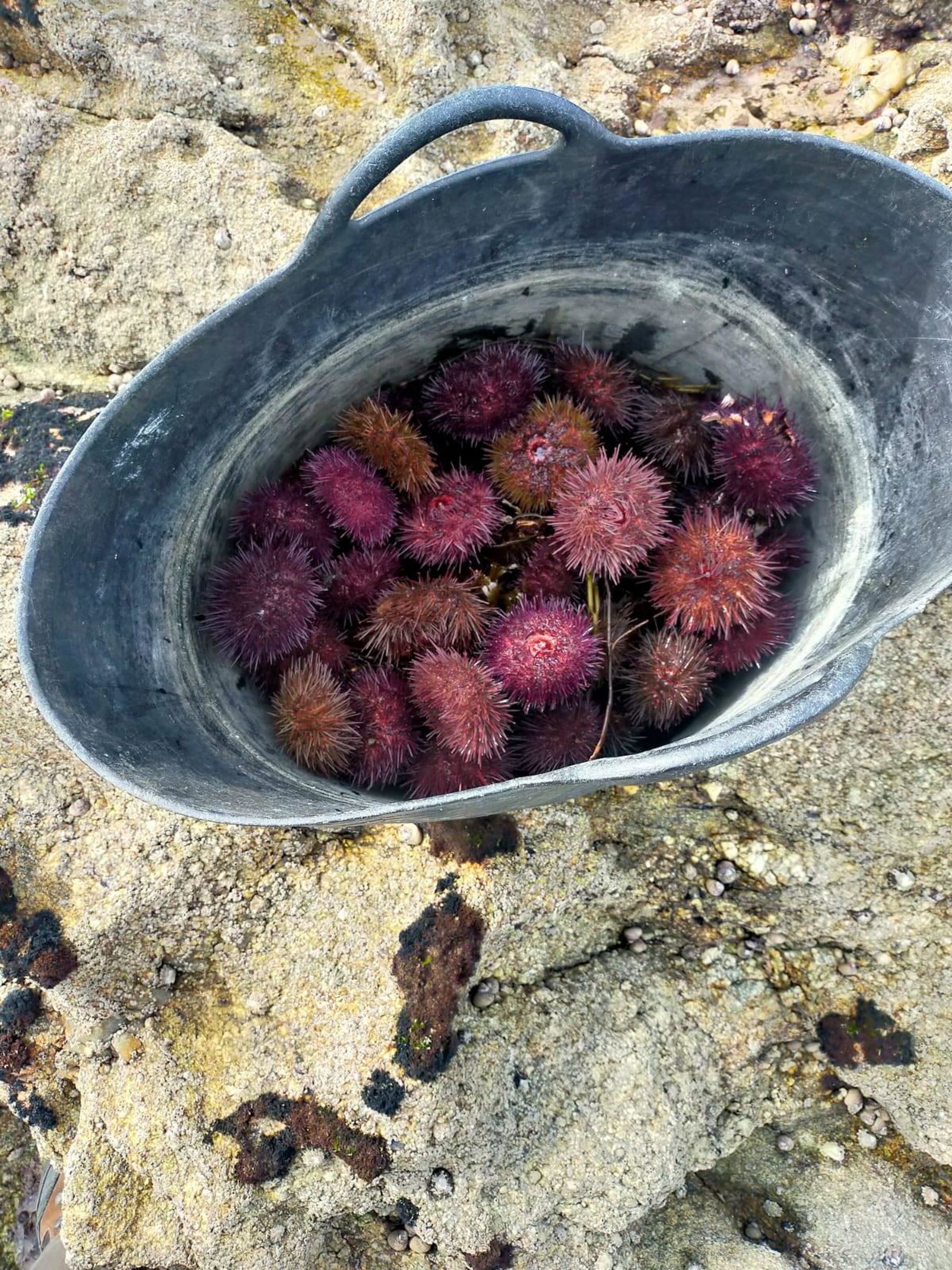 Agentes de la Policía Local de Vigo sorprendieron a tres personas, dos mujeres y un hombre, cuando extraían erizo de mar de forma ilegal en la zona de O Portiño, y les fueron intervenidos 17 kilos de este equinodermo.