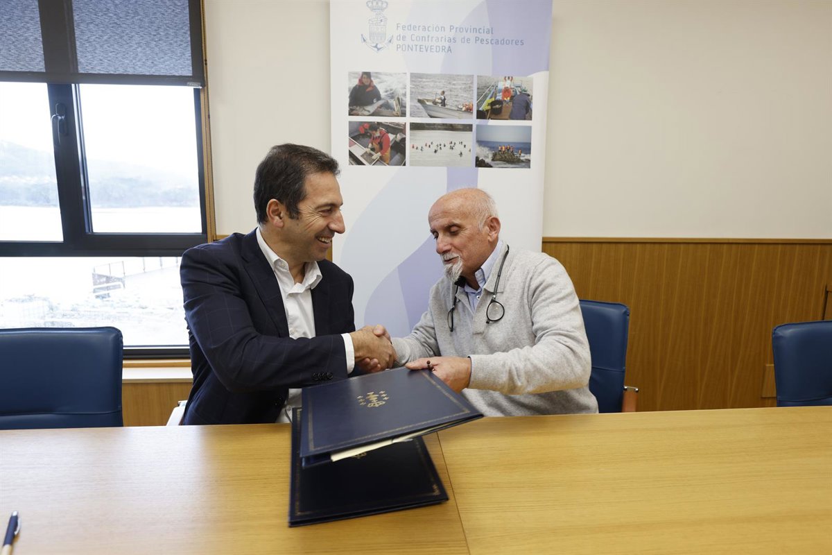 El conselleiro do Mar, Alfonso Villares, ha firmado este miércoles con el presidente de la Federación Provincial de Cofradías de Pescadores de Pontevedra, José Manuel Rosas, un acuerdo para reforzar la colaboración entre la Administración autonómica y el sector, dotado con 125.000 euros. La finalidad es potenciar el desarrollo de la actividad de esta entidad como máximo interlocutor de los trabajadores del mar en la provincia.