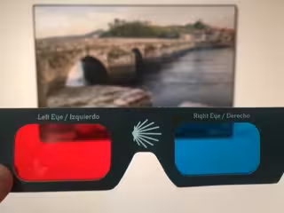 La muestra ofrece una nueva perspectiva para acercarse a los parajes por donde diariamente pasan los peregrinos con la utilización de la tecnología 3D en las fotografías, pensadas para ser contempladas utilizando las gafas rojo-cyan y conseguir así el efecto de las tres dimensiones.