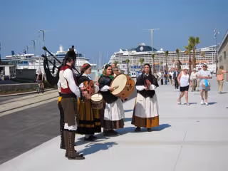 La coincidencia de estas cuatro embarcaciones ha permitido asimismo la entrada en funcionamiento de las recientemente inauguradas instalaciones del 'Tinglado del Puerto', en el Muelle de Comercio, concebidas como una segunda estación marítima --la primera es la del Muelle de Trasatlánticos--. De hecho, este mediodía podía verse en las inmediaciones del recinto a una banda folklórica que daba la bienvenida a los turistas, que desde la mañana paseaban por las calles de la urbe.