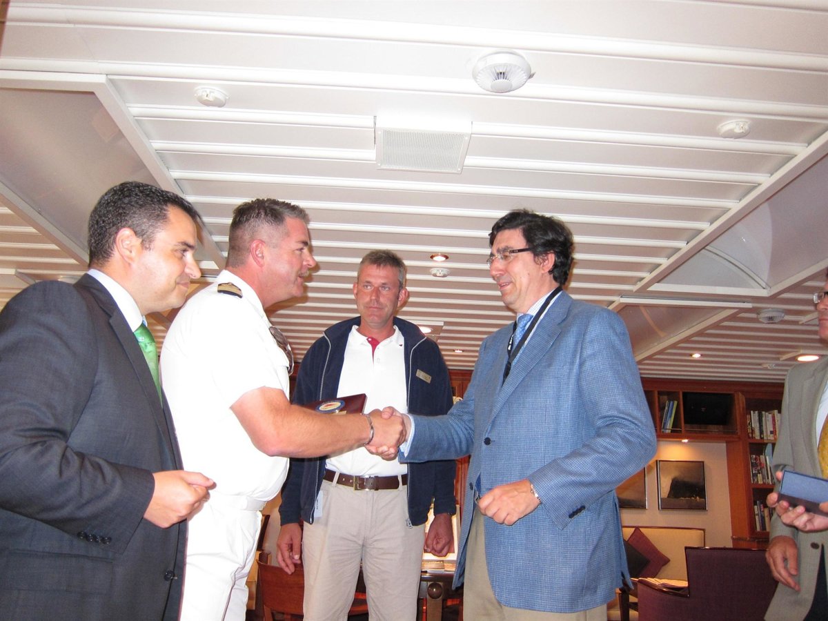 El presidente de la Autoridad Portuaria de Vigo, Ignacio-López Chaves, ha visitado el buque --será la única escala en Vigo que realice este año-- y ha participado en un intercambio de metopas con el capitán. El mandatario del Puerto ha destacado la vocación del puerto por ser referente en tráfico de cruceros y, en ese sentido, ha explicado que, en 2011, en 19 días coincidirán varios de estos barcos en la ciudad --de hecho, este jueves el 'Seadream coincidía con un gran trasatlántico--.