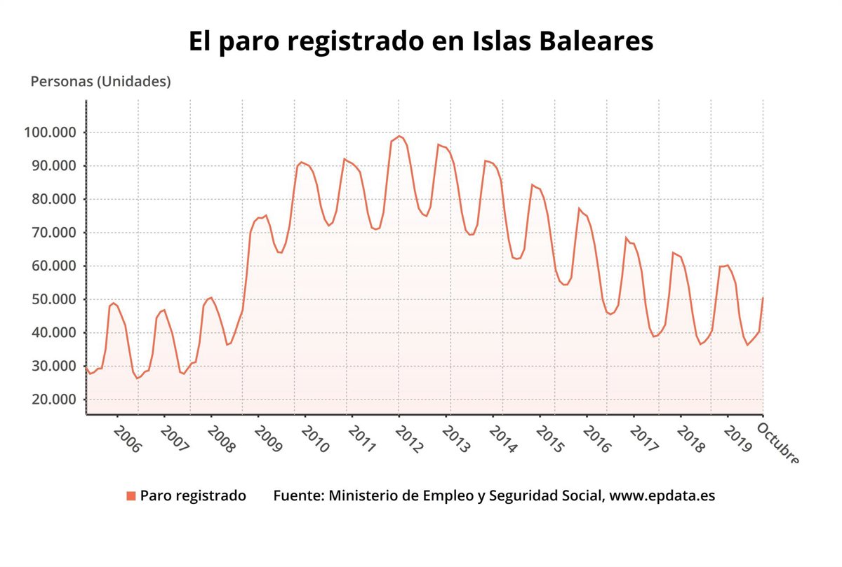 Grfica de l'atur registrat a Balears. - EUROPA PRESS
