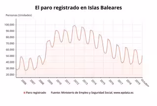 A nivell intermensual, la pujada respecte a setembre a Balears és de 10.209 persones, un 25,28%.