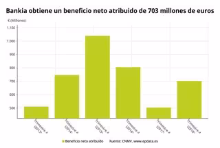Bankia va obtenir un benefici atribut de 703 milions d'euros el 2018, la qual cosa suposa un increment del 39,2% respecte al 2017, després de la incorporació de BMN, segons ha informat aquest dilluns l'entitat a la Comissió Nacional del Mercat de Valors (CNMV).