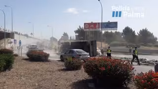 La rotonda no est tallada, per el trnsit és lent perqu un dels carrils est ocupat pel camió bolcat. En aquests moments, diverses unitats de la Policia Local estan a la zona regulant el trnsit a l'espera que arribi la grua.