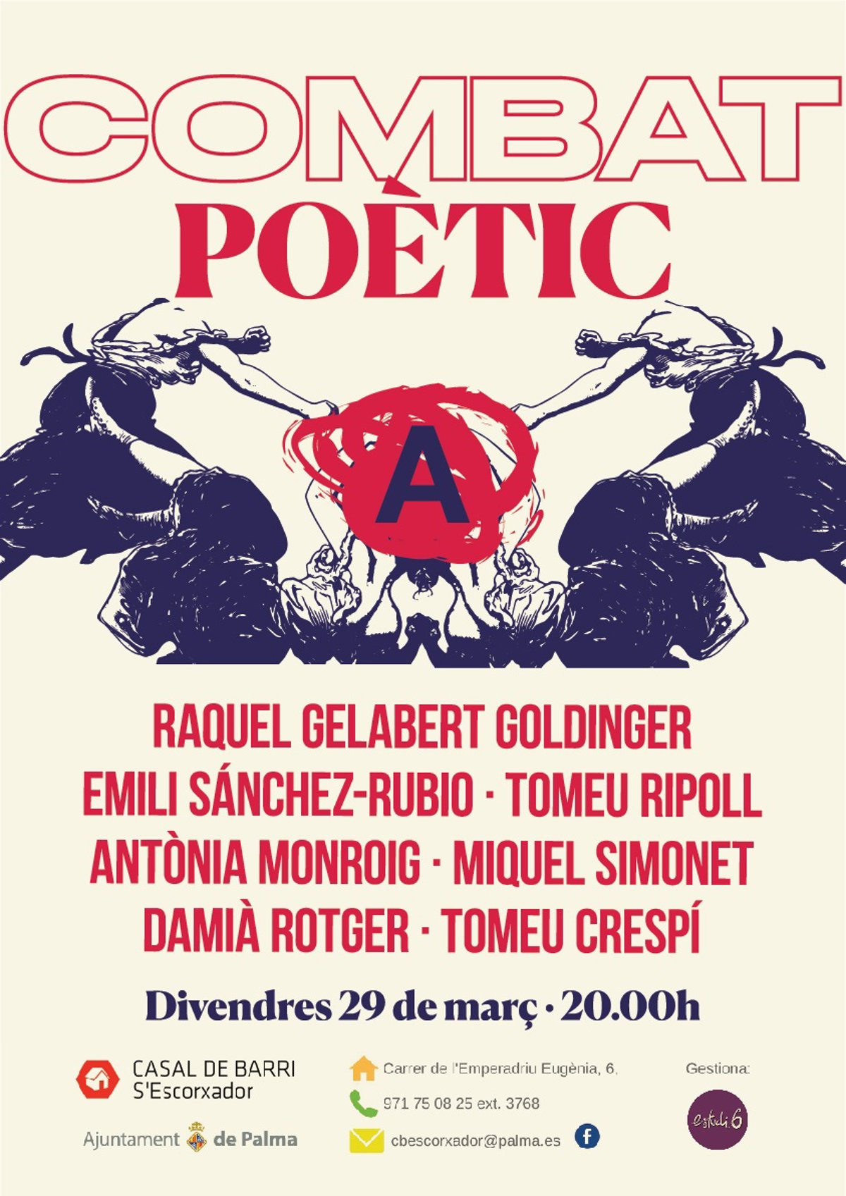 L'Ajuntament de Palma ha organitzat un 'combat potic' aquest divendres en el casal de barri de s'Escorxador que comptar amb la presncia de set artistes i que, a més, promour un format obert i dinmic per "afavorir" la interacció amb el públic, segons ha avanat Cort en un comunicat de premsa.