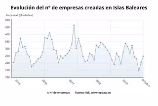 Balears va comptabilitzar a l'octubre la creació de 248 noves societats mercantils, un 7,5% menys respecte al mateix mes de l'any anterior i un dels majors descensos a nivell estatal, segons les dades difoses aquest dijous per l'Institut Nacional d'Estadística (INE).