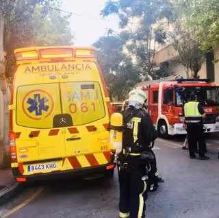 Efectius del SAMU i Bombers treballen a l'incendi en una vivenda de S'Arenal de Llucmajor. - SAMU IB