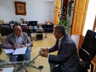 Reunió entre el conseller de Sectors Productius, Juan Pedro Yllanes (esquerra), i l'alcalde d'Inca, Virgilio Moreno - CAIB