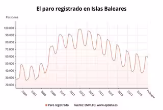 D'altra banda, la xifra de demandants d'ocupació registrada a Balears al febrer va ser de 119.491 persones, de les quals 55.061 ja tenien una ocupació.