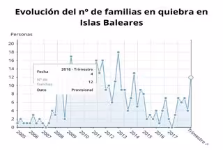 Les famílies i empreses de Balears que es van declarar en concurs de creditors (suspensió de pagaments i fallides) en el quart trimestre de 2018, davant la impossibilitat d'afrontar els seus pagaments i deutes, van sumar un total de 46 deutors concursats, la qual cosa representa un augment del 64,3 per cent respecte al mateix període de l'any anterior.