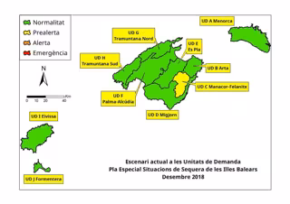 Només la UD Manacor-Felanitx es manté en situació de prealerta, per la previsió és que el proper mes entri en normalitat i, així mateix, les úniques UD que han registrat índexs inferiors al de novembre són Tramuntana Nord, Tramuntana Sud i Formentera.