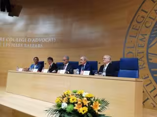 L'advocat i exfiscal de l'Audincia Nacional Jesús Santos (centre de la taula), en el Collegi d'Advocats de Balears. - EUROPA PRESS
