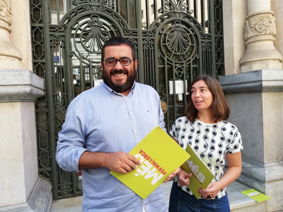 El senador de MÉS per Mallorca, Vicen Vidal, i la regidora de MÉS per Palma, Neus Truyol, davant del Parlament - EUROPA PRESS