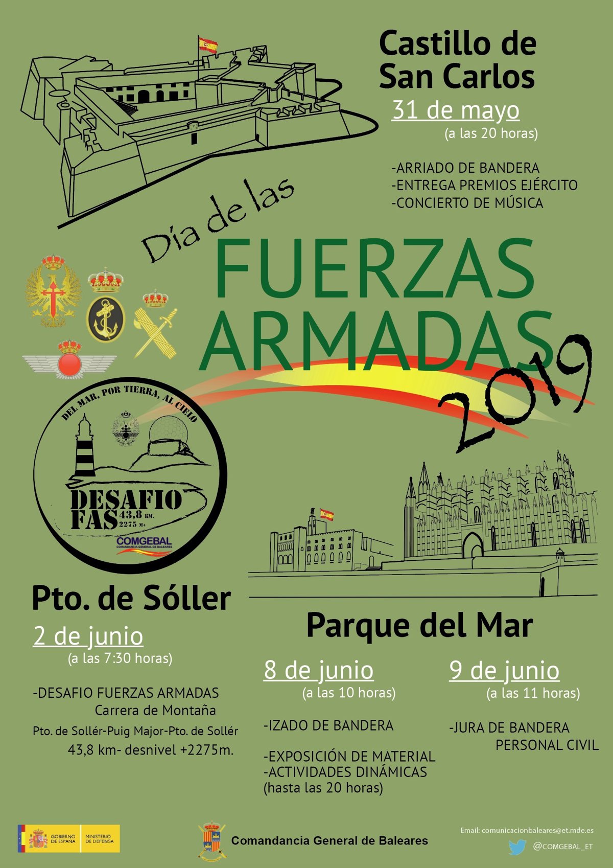 A les 10.00 hores, est previst que el comandant general de Balears, Juan Cifuentes Álvarez, acompanyat per les autoritats civils i militars, realitzi un hissat de la bandera, previ al recorregut pels diferents llocs.