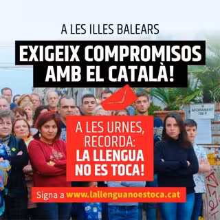 Cartell de la Plataforma per la Llengua de cara als comicis del 26M a Balears (Imatge d'arxiu). - PLATAFORMA PER LA LLENGUA - Archivo