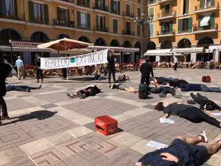 Prop de 40 activistes han participat aquest dissabte en una performance organitzada pel collectiu 'Extinction Rebellion' que s'ha dut a terme a la Plaa Major de Palma amb l'objectiu de conscienciar a la població del problema del canvi climtic i la "passivitat dels governs" davant la situació, segons els organitzadors.