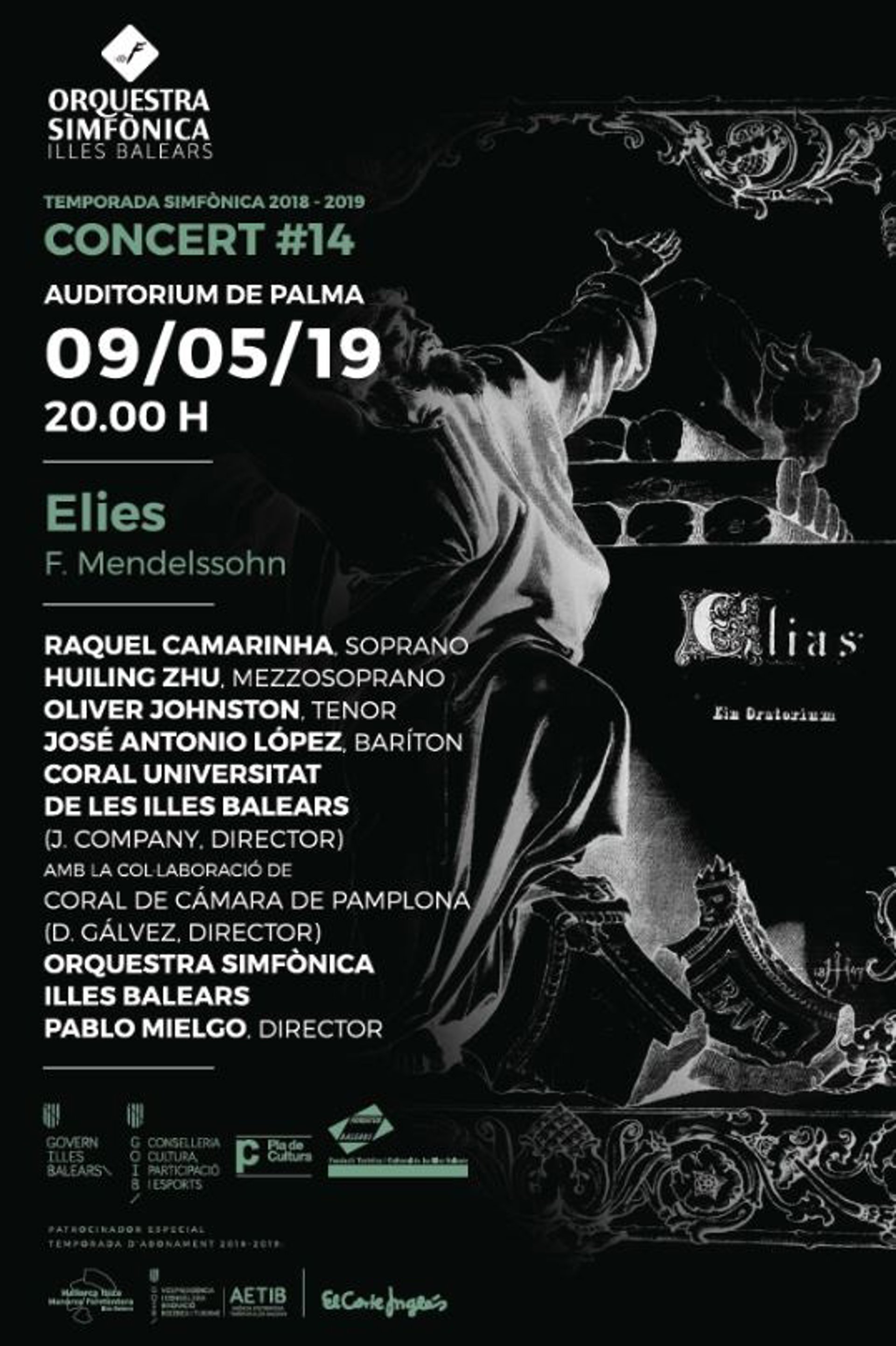 L'Orquestra Simfnica de Balears interpretar per primera vegada l''Oratori d'Elias' de F. Mendelssohn, al catorz i penúltim concert de temporada, el 9 de maig de 2019, a les 20.00 hores, al Auditorium de Palma.