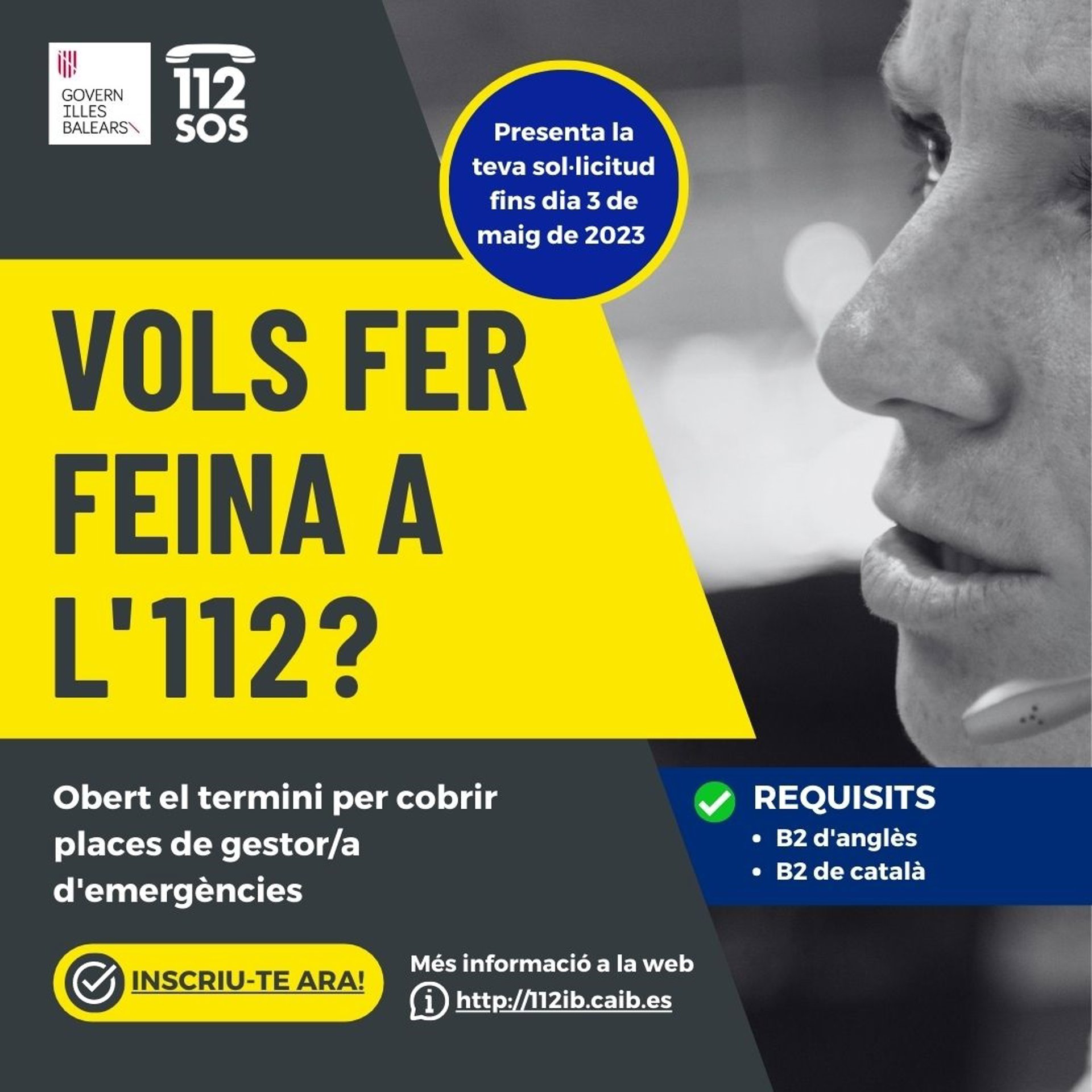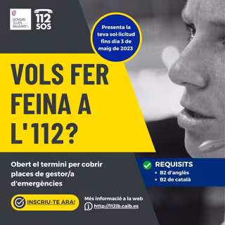 La empresa pública Gestión de Emergencias de Baleares (Geibsau) ha abierto este viernes una convocatoria, que durará hasta el próximo 3 de mayo, para la selección de personal laboral no permanente para la tarea de gestor de emergencias del SEIB112 con el objetivo de cubrir las vacantes de plantilla.