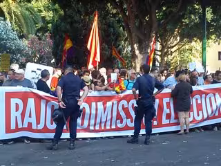 Por otra parte, entre las banderas republicanas, comunistas, independentistas y homosexuales que ondeaban sobre las cabezas del cúmulo de personas, algunas muy jóvenes, una de las manifestantes ha afirmado que "nuestros delincuentes están dentro", refiriéndose a los políticos que se encontraban en la rueda de prensa, y no entre ellos.
