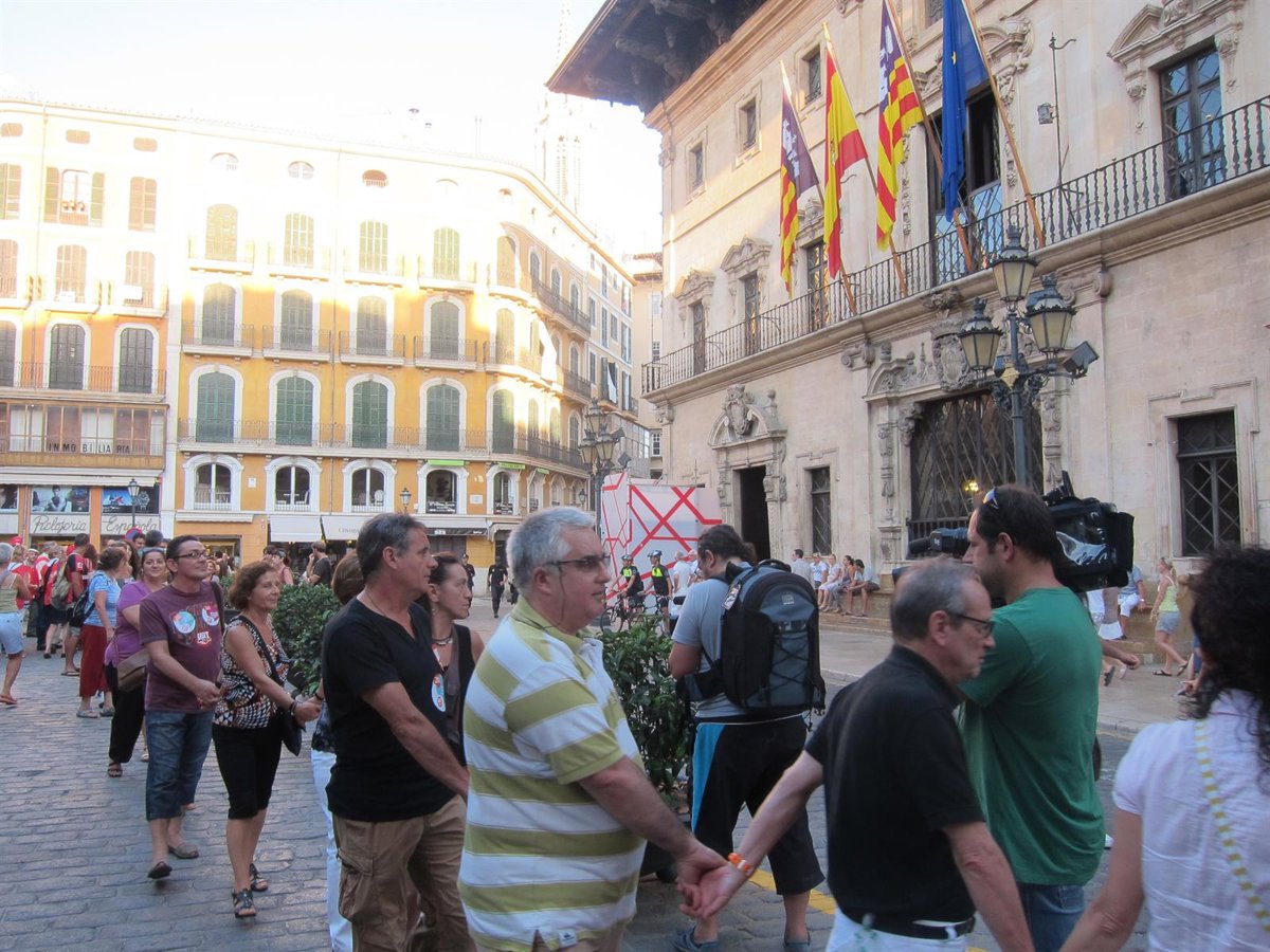 Así lo han puesto de manifiesto los distintos representantes sindicales en declaraciones a los medios antes de que se formase la cadena, que pretendía enlazar, pasando por la plaza de Cort, las sedes del PP y del PSIB, si bien a esta última no ha logrado llegar. Mediante esta acción, que se enmarca en las protestas nacionales en contra de la reforma constitucional, también se ha reivindicado la convocatoria de un referéndum a fin de que la ciudadanía también pueda decidir en este sentido.