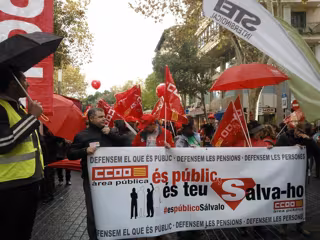 Unas 250 personas se han manifestado este sábado en Palma, en un acto convocado a nivel europeo por la Confederación Europea de Sindicatos (CES)en defensa de lo público, las pensiones y las personas y para pedir un Plan de Inversiones Europeas que ayude a salir de la crisis.