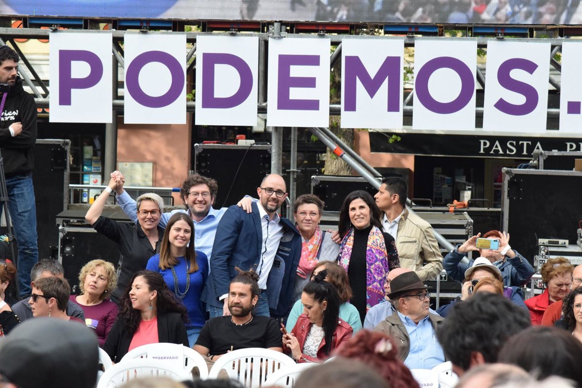 Varios representantes de Podemos Baleares, entre los que están los candidatos al Congreso y al Senado para Baleares, Antonia Jover, Pep Malagrava y Mae de la Concha, han asistido este sábado a Madrid a un acto político de la formación de cara a las elecciones generales del 28 de abril.