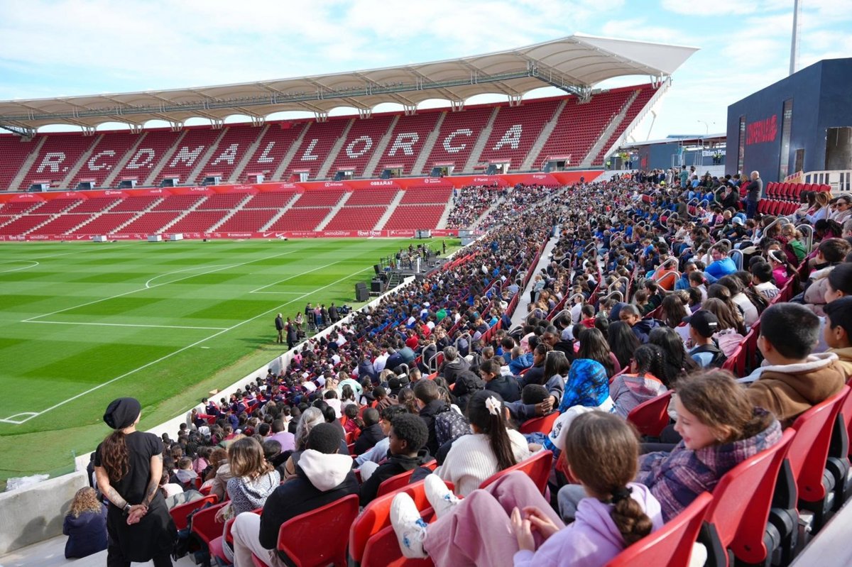 Unos 3.500 alumnos de primaria y secundaria de centros públicos y concertados de Palma han participado este viernes en el acto celebrado en el Estadi Mallorca Son Moix para conmemorar el Día Escolar de la Paz y la No Violencia.