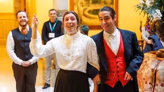 El dramaturgo Miquel Mas Fiol, a través de la compañía 'Ovnipresents', propuso un viaje en el tiempo con una pieza teatral que revive un hecho histórico sucedido en el edificio, cuando éste era la sede del Círculo Mallorquín.