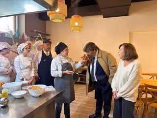 El vicepresidente segundo y conseller insular de Medio Ambiente, Medio Rural y Deportes, Pedro Bestard, acompañado por la directora insular de Residuos, Margalida Roig, ha asistido este viernes a un 'show cooking' ofrecido por la chef Cati Pons, en el espacio gastronómico del mercado del Olivar de Palma, una cita a la que han asistido alumnos del primer curso del ciclo de grado medio de FP intensiva de cocina del CIFP Juníper Serra, donde han degustado un menú completo elaborado con ingredientes locales.